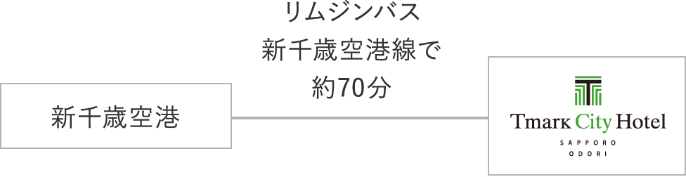 新千歳空港バス乗場14番または22番より札幌都心行に乗車、札幌ビューホテル大通公園前下車、徒歩5分。 ◆空港連絡バス時刻表(北都交通)※空港からホテルまで「「スマートシャトル®」(有料)」 もご利用頂けます。