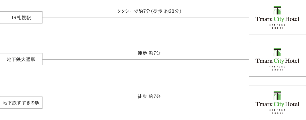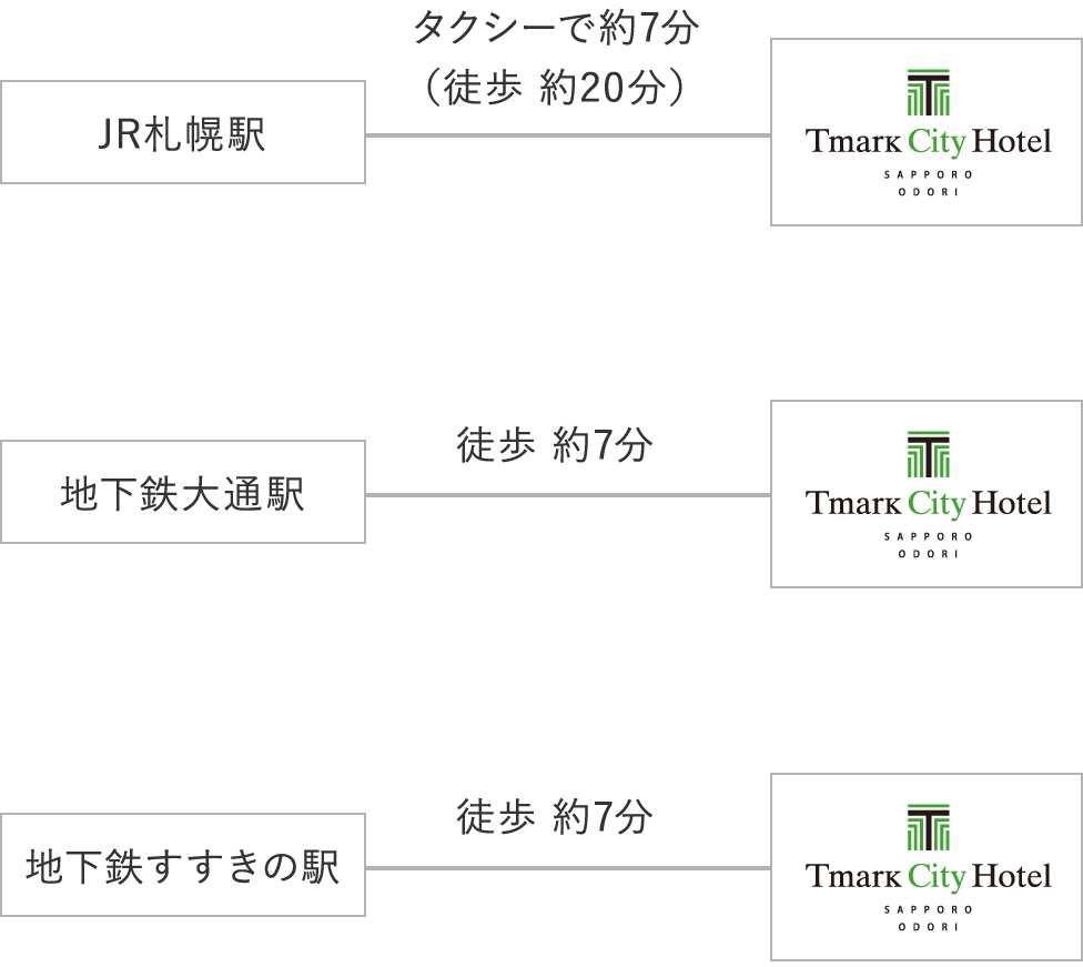 JR札幌駅よりタクシーで約7分(徒歩約20分)、地下鉄大通駅より徒歩約7分、